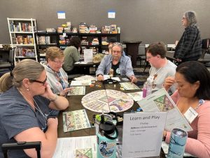 In a Learn & Play, an experienced volunteer will teach you the rules of the game. Afterwards, the volunteer will help get the players into a full game. If more than one copy is available and there is enough interest, two games may be started. If you are familiar with the game, it’s ok to join in once the demo has finished.